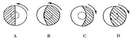 小题3:太空授课直播时,地球的昼夜分布情况最接近下图中的(?)