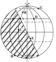 £¨4£©£Á¡¢£Â¡¢£ÃÈýµã×îÏÈ¿´µ½ÈÕ³öµÄÊÇ_________¡£Ì«Ñô¸ß¶È£È£Á¡¢£È£Â·Ö±ðÔõÑù£¨´óÓÚ£°¡¢Ð¡ÓÚ£°¡¢µÈÓÚ£°£©£¿