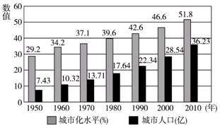 1、单选题 读“世界城市化进程图”,完成问题。