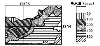 小题1:图示经纬线交点附近年降水量小于200毫米,属于干旱区,水源是其农业发展的主要制约因素。