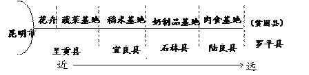 ②主要是距昆明或市场的远近,(1分)交通成本的高低,导致农产品利润差异而形成。(1分)(由于花卉、蔬菜容易腐烂变质,生产地距离昆明远,需要长途运输,成本增加,所以,呈贡县成为了昆明花卉、蔬菜生产基地;而罗平县距离昆明远,农产品运输成本高,利润低,因而贫富悬殊。)
