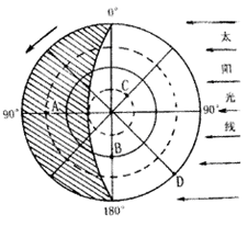 (3)根据昼弧长度计算昼长,白昼最长的是C点24小时,最短的是D点12小时,二者相差12小时。
