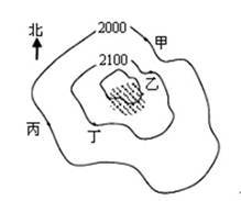 5、单选题 下图示意某山地顶峰周边的情况,阴影部分为终年积雪,甲、丁两地气温相同。读图回答题。