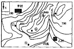 3、单选题 读北半球某地等高线示意图(单位:米),完成下列问题。