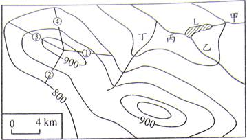 1、单选题 下图是某地等高线图,读图回答下列问题。