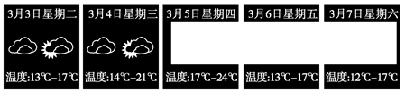 4、单选题 下图为“2009年3月3日~7日天气预报图”(来源:南海气象局)。关于南海区3月5日到7日的天气预测,正确的是?