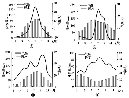 (2)假设上图为夏季海陆间的季风环流图,那么图中的甲地为________(填陆地或海洋),①风的性质