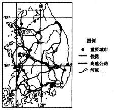 (1)缓解就业困难、交通拥堵、环境恶化、住房困难等(每点2分,最多得4分);朝韩两国关系紧张,世宗离朝鲜远一些,国防安全;(2分)分散城市职能,建行政首都世宗市;(2分);国家经济均衡发展,带动中东部发展(2分)。(后3点任答两点,4分)