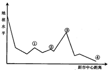 2、单选题 下图是某城市土地利用付租能力距离递减示意图,完成1—2题。