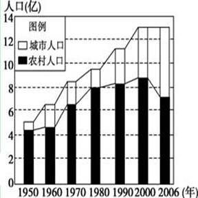 3、单选题 读“我国总人口及城乡人口变化情况图”,完成题。
