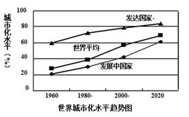 1、单选题 社会经济的发展推动着城市化进程,“世界城市化水平趋势图”表明21世纪( )