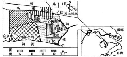 (2)为了改善城市环境质量,应将石化、化肥等重污染工厂搬迁到 A 、B、C、D 区域中的?区。在 C 区,街道多呈东西—西北走向,其最有可能考虑的因素是?。