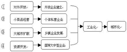 2、单选题 如图是我国四个不同地区城市化的典型模式,据此完成问题。