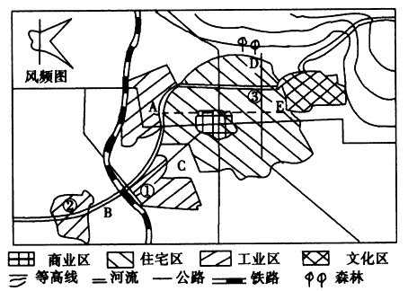 3、综合题 读下图(各功能区都布局合理),回答下列问题。