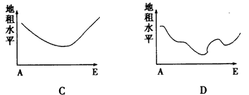 (3)下列四图中,正确表示AE间地租水平变化曲线的是?