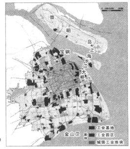 1、单选题 下图为上海市工业用地分布示意图。读图完成下列题。