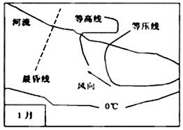 2、单选题 读“中纬度某地某日河流、晨昏线、风向、等值线的组合图”,回答下列以下问题。
