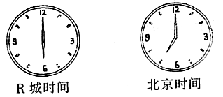 3、单选题  某日一位来自R城的游客在北京一宾馆住宿,此时R城的日期和区时与北京都不同(见下图)。据图推测R城的位置在(   )