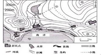 5、单选题 图中A、B、C、D、E为浙江某地的5个小村庄。读图回答问题。
