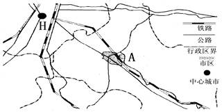 4、单选题 图中A城为以机电、轻纺、食品工业为主的H市的卫星城。读图完成题。