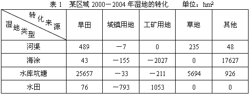 注:表中数据正值表示正向转化――湿地面积增加,负值表示逆向转化――湿地面积减少。