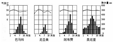 ﹙1﹚简析尼日尔河下游形成两次汛期的原因,并比较说明两次汛期洪峰流量的大小及原因。(14分)
