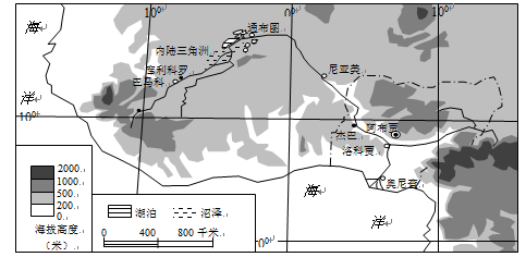 ﹙2﹚分析尼日尔河中游形成内陆三角洲的原因。(6分)