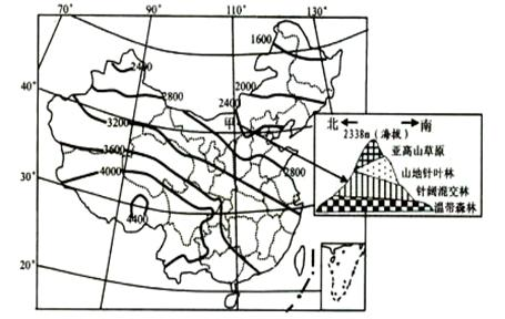 4、单选题 高山林线指山地森林分布的最高界线,下图为我国高山林线理论海拔等值线分布图(单位:米)。读图回答题。