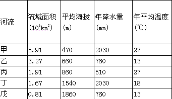 1.河流代号与表格数据对应正确的一组是2.图中河流b和河流c流域内,在当地农业发展初期由于人类活动不当引起的最突出的环境问题是
