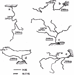 1、单选题 读世界几条主要河流简图及各河流的有关数据,完成下列各题。