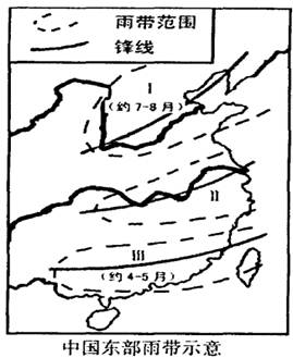 小题1:根据雨带在Ⅰ、Ⅲ地区的时间,可以推论,在一般年份,雨带推移至上海地区的时间大致是