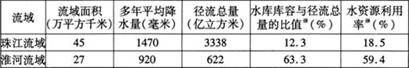 2、综合题 下表为珠江、淮河流域有关数据对比表。读表回答问题。