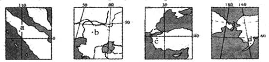 小题1:结合四地的经纬度位置和海陆轮廓判断,a表示马六甲海峡;b表示乌拉尔河;c表示土耳其海峡;d表示白令海峡。
