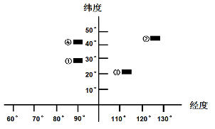 1.考查中国农作物的分布,根据图中经纬网判断①青藏高原,②东北平原,③华南地区,④新疆地区。故根据各地的气候特点相对应的作用分别为青稞、甜菜、甘蔗、棉花。