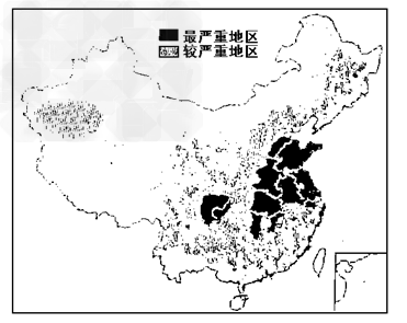 材料三:下图 我国PM2 .5?最严重区和较严重区分布图