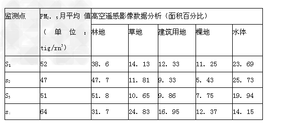 材料二我国四监测点PM 2.5月平均值与高空遥感影像数据分析(面积%)对比表