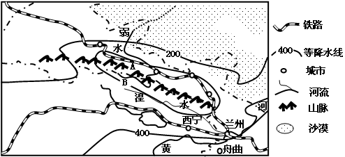 (3)图中字母B代表的等降水量线的数值是?,分析该线闭合区域降水出现差异的原因。(6分)