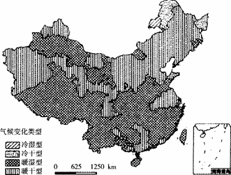 材料一 图是1990~2005 年我国气候变化类型示意图。