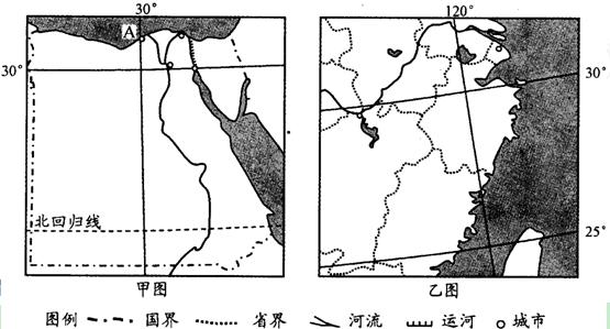 (3)一艘海轮从甲图中A港口出发,走最近的海上航线到美国的旧金山,写出沿途经过的主要海域、海峡和运河。(5分)