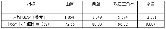 表2? 2004年广东省各地带工业化指标