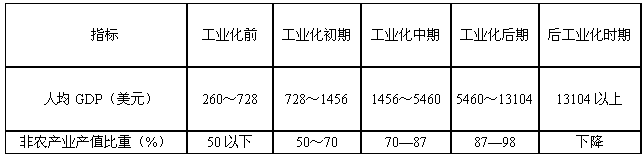 表1? 工业化发展阶段判别标准