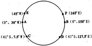 1.飞机沿最近路线从E点到F点的飞行方向为2.E点的夜长为