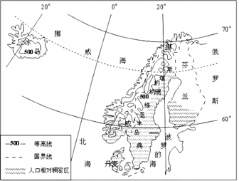 1、综合题  北欧主要包括挪威、瑞典、芬兰、丹麦和冰岛五个国家,该区域人口稀少,经济发达。根据下列材料,结合所学知识,完成下列小题。