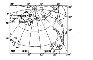 3、单选题 某货轮8月中旬从挪威希尔克内斯港出发,沿图所示航道航行,于9月中旬抵达中国连云港。读图,回答下列问题。