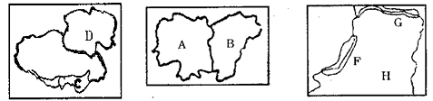 本题解析:本题考查我国的区域地理。(1)结合图示的省区轮廓和河流轮廓判断,H位于黄土高原,由于人口稠密,长期的过度开垦等不合理人类活动导致水土流失严重,故通过缓坡建梯田,既保持水土,又扩大耕地面积。(2)图示AB为湖南省和江西省,主要的地形区为东南丘陵。(3)D位于青藏高原,地势高,故终年气温较低,气温年较差小;但由于地势高,空气稀薄,故昼夜温差大。(4)图示FG为黄河沿岸的重要灌溉农业区,由于流经干旱地区,降水少,蒸发大,且工农业用水量大,导致水量不断减少。