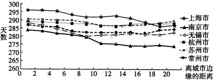 2、单选题 图为六城市边缘区植被生长期变化坐标图,读图完成各题。