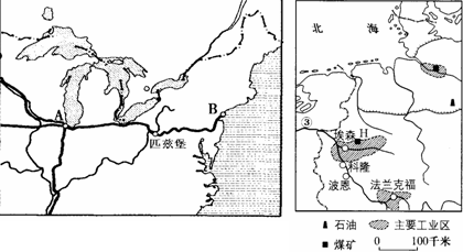 小题1:左图和右图中分别有世界上著名的传统工业区,它们共同区位优势是________资源和水资源丰富、__________________、_______________。