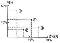 小题1:三轴坐标的读图需要注意读图方法,应以每条横坐标的原点位置确定应用的纵坐标,以与纵坐标平行的原则读数即可,据此①代表的工业其劳动力因素占60%以上,故判断为劳动力密集型工业,只有电子装配工业符合。