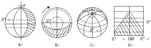 (5)图A太阳直射45°E;图B中太阳直射90°E;图C、D太阳直射0°经线。