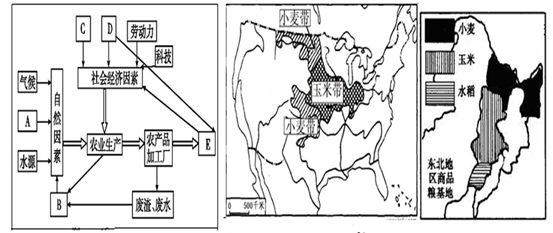 5、综合题 读“农业的主要区位因素图(图15)”和“美国与中国东北地区农业分布示意图(图16)”,回答下列问题:(10分)